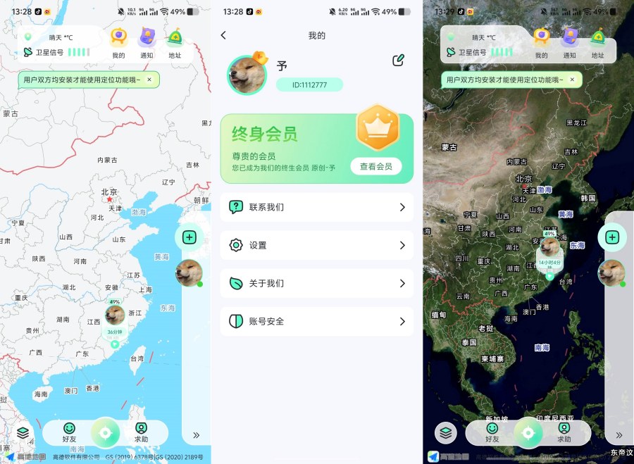 2、实时位置共享:守护情侣、家人、密友出行轨迹,历史30天轨迹动态一键可查,去哪都知道:
